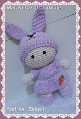Olá.......Boneca ❤Melzinha Amigurumi ❤feita por mim e confeccionada com o Fio Duna para a Bonequinha e para o vestido e Gorrinho de Coelhinho o Fio Charme Lilás Candy Colors da Círculo .